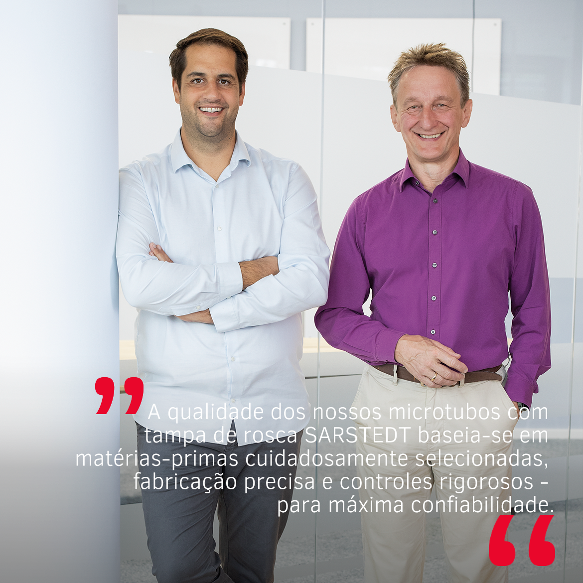 Na SARSTEDT, trabalhamos de acordo com o princípio: Convençemos pela qualidade e fidelizamos pelo serviço. Confiabilidade e experiência, inovação e dinamismo - baseamo-nos em valores comprovados e confiáveis, combinados com processos dinâmicos e pensamento e ação baseados em parcerias.